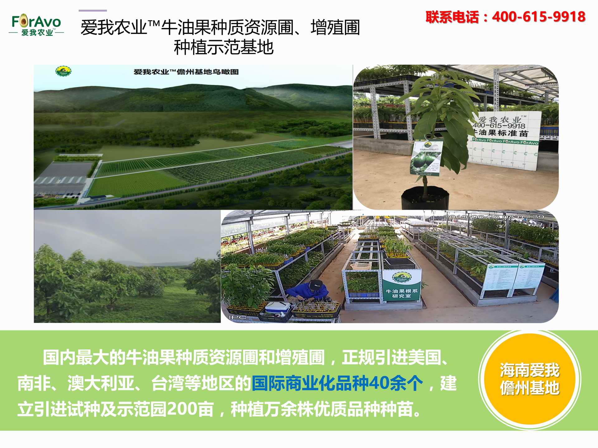 海南愛我農業科技有限公司是一家綜合性的高科技農業發展企業,旗下愛我農業TM致力于打造中國最大最強的牛油果種植企業。依托美國、南非、澳大利亞等擁有百年牛油果繁育、種植歷史以及產業鏈市場的優勢,開展牛油果種苗繁育、種植技術,種植加盟、深加工等產業。結合中國市場,面向廣大苗圃基地、種植農場、合作加工等企業,推出的適合規?;藴驶呐S凸a業鏈服務。 Hainan Foravo Agricultural Technology Co., Ltd. is a comprehensive high-tech agricultural development enterprise , dedicated to building the largest and most powerful avocado plantation enterprise in China. Relying on the advantage of avocado nursery, planting history, and the industrial chain over 100 years in the United States, South Africa, Australia, we are carrying out nursery, planting, proce...